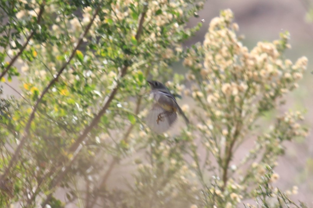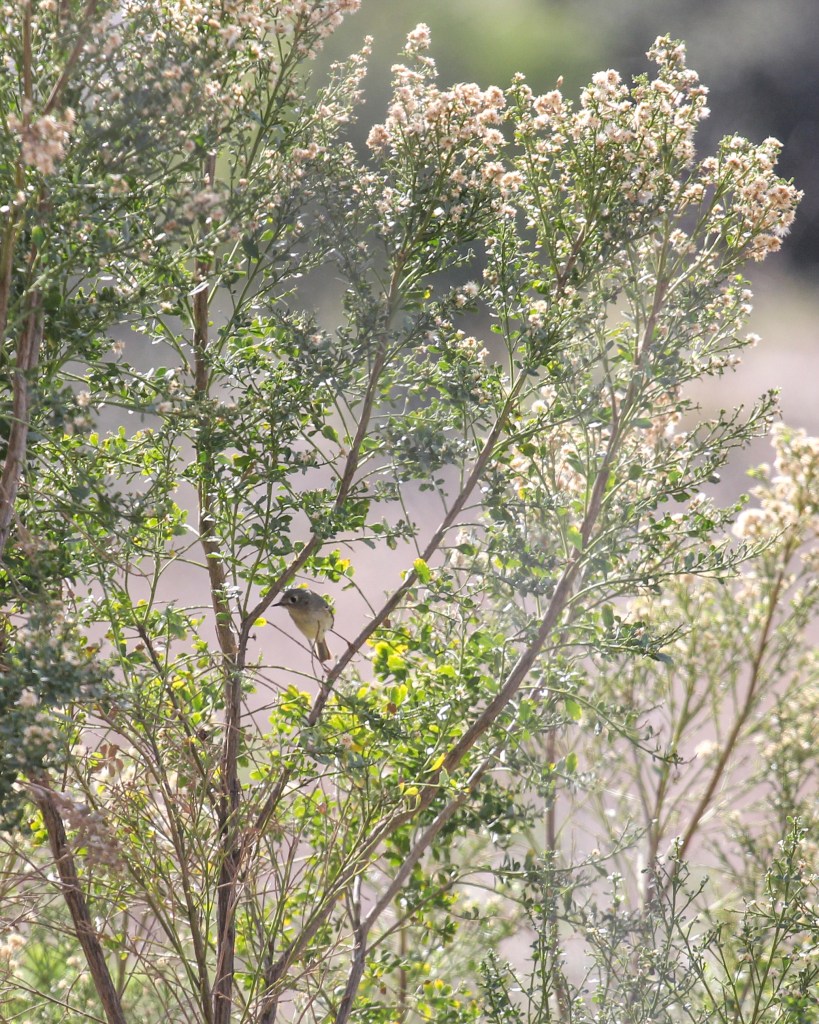 I believe this is a female Black-Chinned Hummingbird. Lots of florescent green!